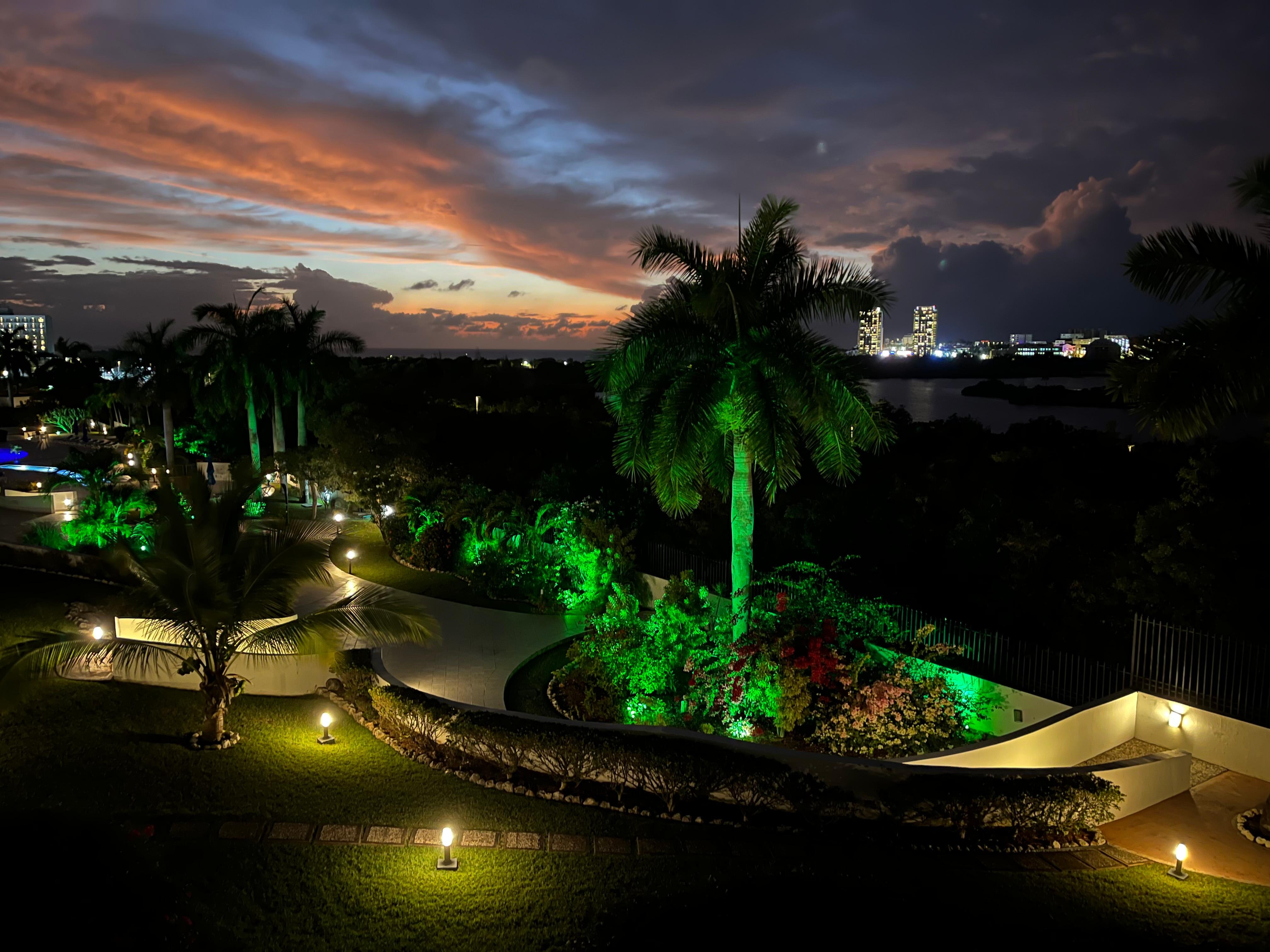 - A large terrace with a view of the lagoon, golf course, and sea