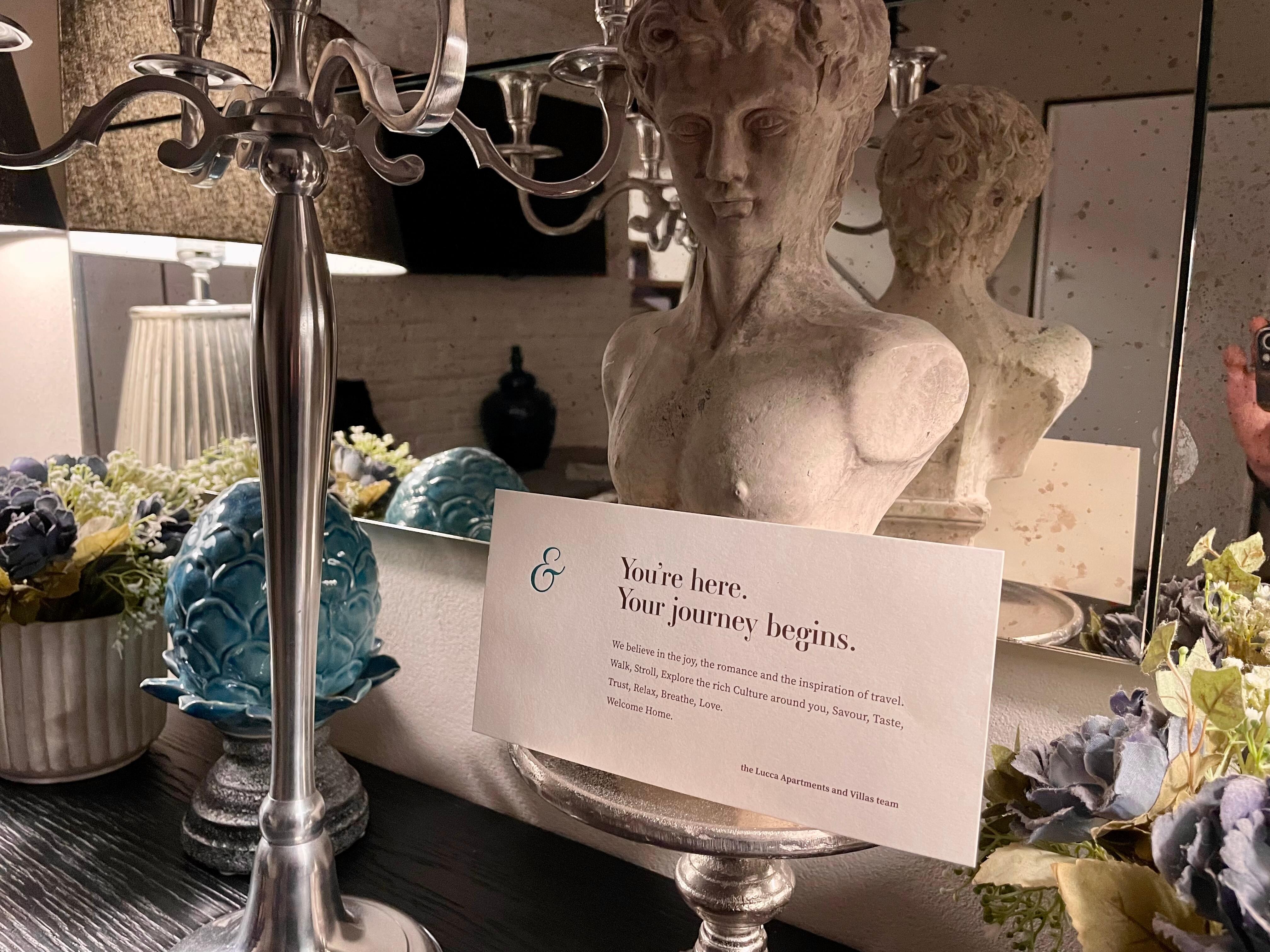Fascinating greys, persuasive whites, enveloping dark tones and pops of gold and silver complete the colour palette. Tasteful antique prints and standout artwork adorn the warm walls. The fully equipped kitchen, featuring finest Italian cabinets, joins the refined living room, effortlessly allowing meals to be transported between the two. Dine under the glittering lights of the ornate chandelier that drips above the stylish table and velvet chairs. A quaint location, offering picturesque views of Lucca, is the perfect spot to sneak away for a moment of reflection.