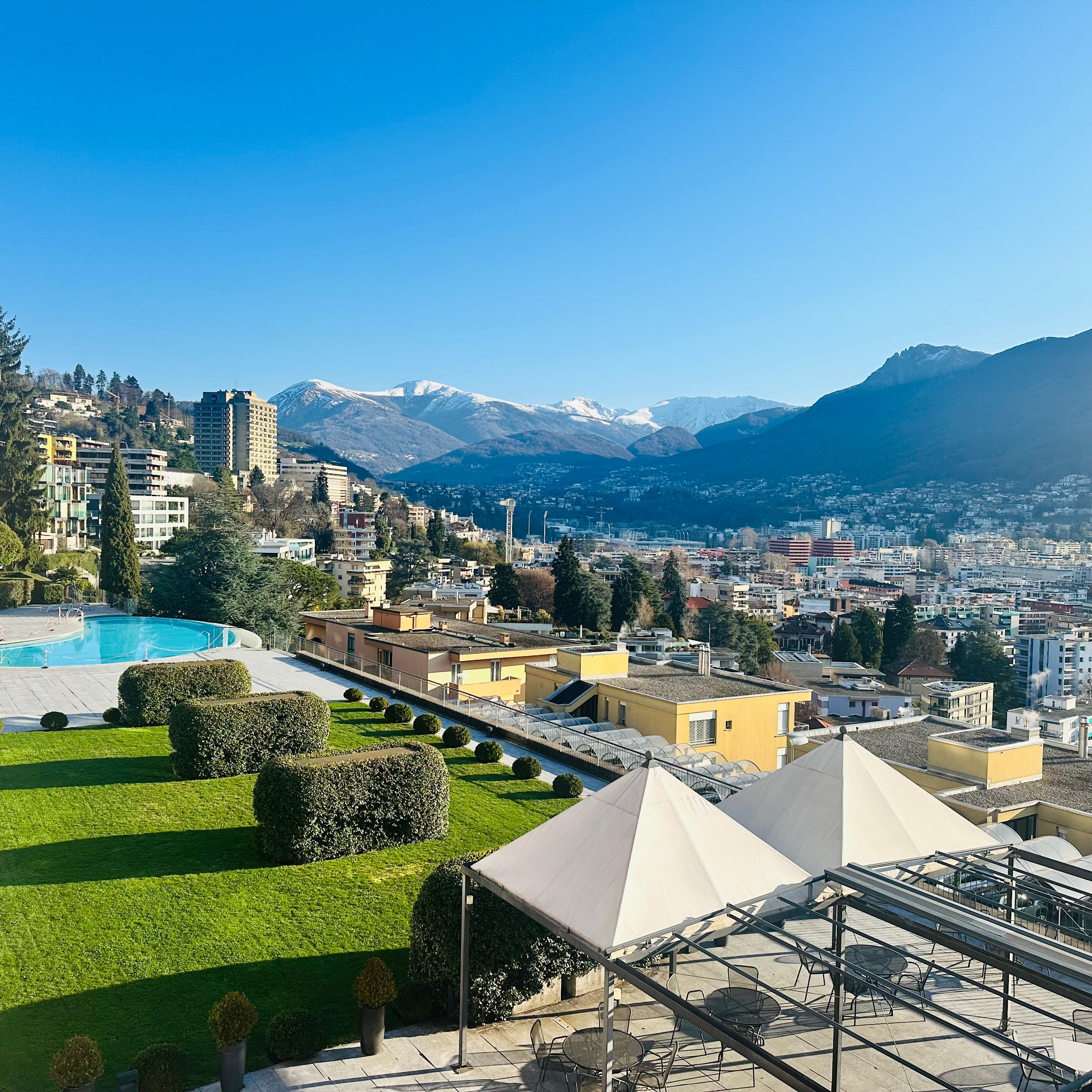Flott utsikt på rommet med balkong (vi hadde suite i toppetasjen), svært vanskelig adkomst med bil da verken Google maps, Waze eller Apple kart klarte å finne riktig vei i forhold til parkering. Lange korridorer for å komme frem til rommet. Rommet og badene var ganske skitne, sengene var veldig harde. Aircondition i stuen bråkte mye. Frokost var ok/middels, men med en flott utsikt for lugano. Hyggelig og hjelpsom betjening og god service. Trenger oppgradering, var nok fint i sin tid..