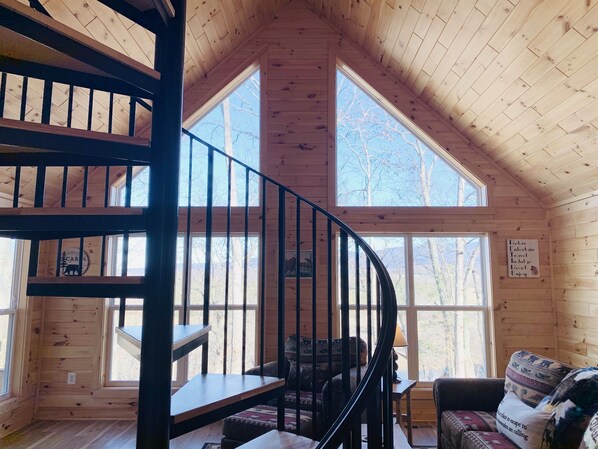 Eaglet er en koselig hytte med et moderne vakkert interiør og interiør. Tregulv, rustfrie apparater, flatskjerm-TV - alt er nytt, luksuriøst og venter på din personlige glede. Bildene fanger noe av skjønnheten, moderne design, naturen og åpne områder. Ta en titt på disse og drikk det hele inn!