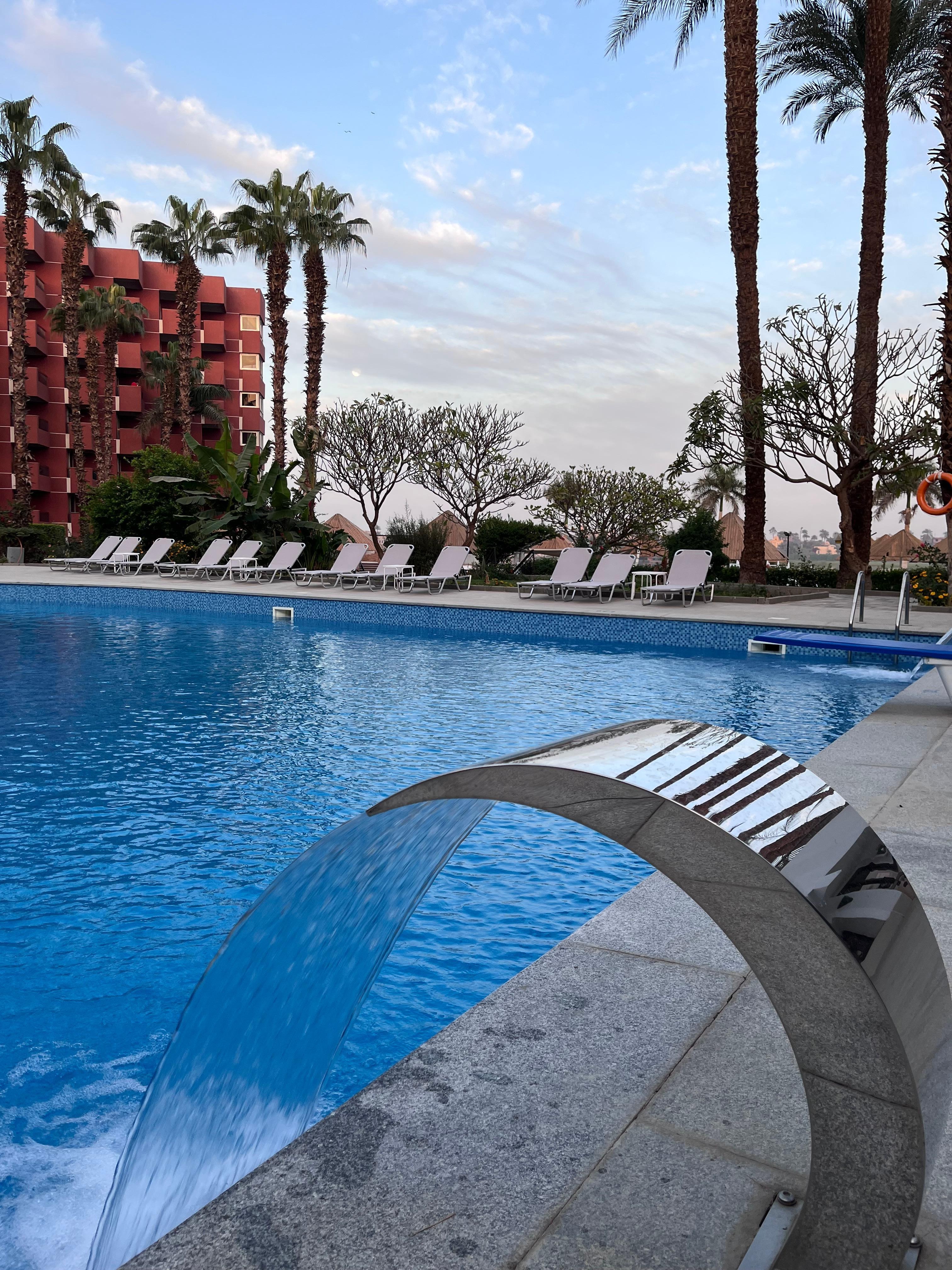 This hotel was brilliant, fulfilling our requirements. The pool was amazing set by the Nile and the staff were really friendly both around the amenities and in the hotel itself.