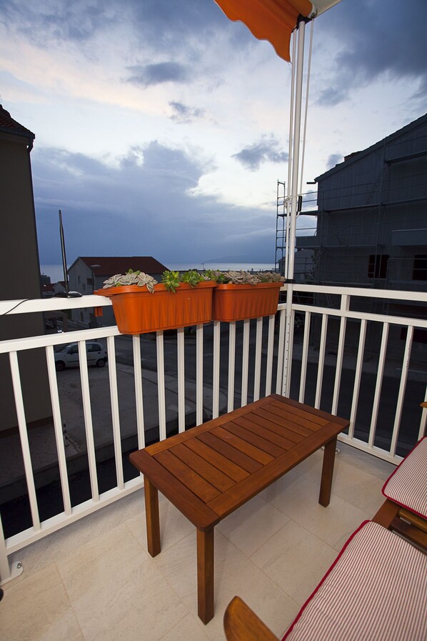 2 balkonger To separate balkonger (røyking tillatt) lar deg slappe av og nyte vakker solnedgangs utsikt over havet og også storheten i de omkringliggende Biokovo-fjellene. Inkluderer dekkmøbler og tørkestativ.