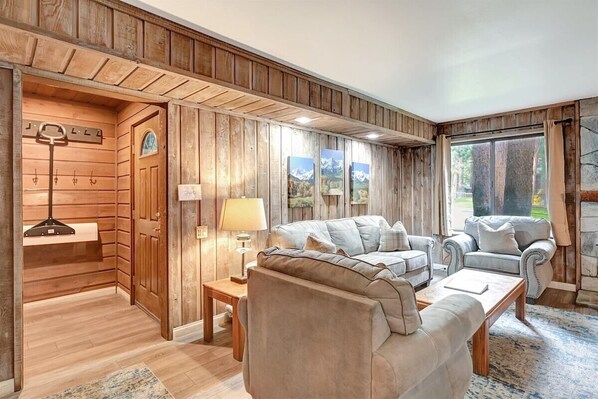 Nice Two Bedroom & 2 Bath Condominium i byen i nærheten av Sierra Star Golf Course og pendelruten til Eagle Lodge Express Ski Lift Area i Mammoth Lakes. Soveplasser til 6. Første etasje enhet. Hovedsoverommet har 1 queen size-seng. Det andre soverommet har 1 queen size-seng og 1 sett med to køyesenger. 2 flatskjerm-TV og DVD-spillere, Stue og Master Bedroom. Du går inn i enheten fra første etasje og det er alt ett nivå. Flatskjerm-TV i stuen. Enheten har WIFI. Det er 2 utendørs parkeringsplasser tilgjengelig. Det er et spillrom med et biljardbord, et bordtennisbord og et videospill i lobbyen på Sunshine Village-condos. Om sommeren har du tilgang til grillområder i hele komplekset og en tennisbane i nærheten av svømmebassenget på Sunshine Village. Mynt-opererte vaskerom ligger i fellesområdet nær kontoret. TOT LISENS 3390-SV157.