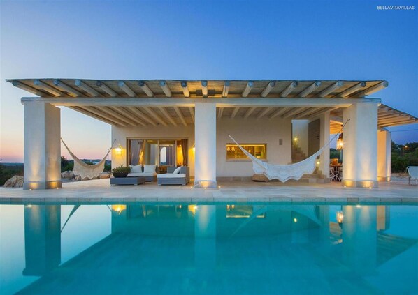 Denne villaen har 8 gjesterom. TV med DVD-spillere.