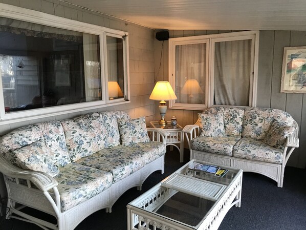 4 private soverom, 2 fulle bad, fullt utstyrt kjøkken med stor granitt øy, 2 full størrelse kjøleskap, 4 brenner komfyr, 2 spisestue, stor skjerm veranda med spiseplass og sittegruppe. Stort dekk med patio sett.