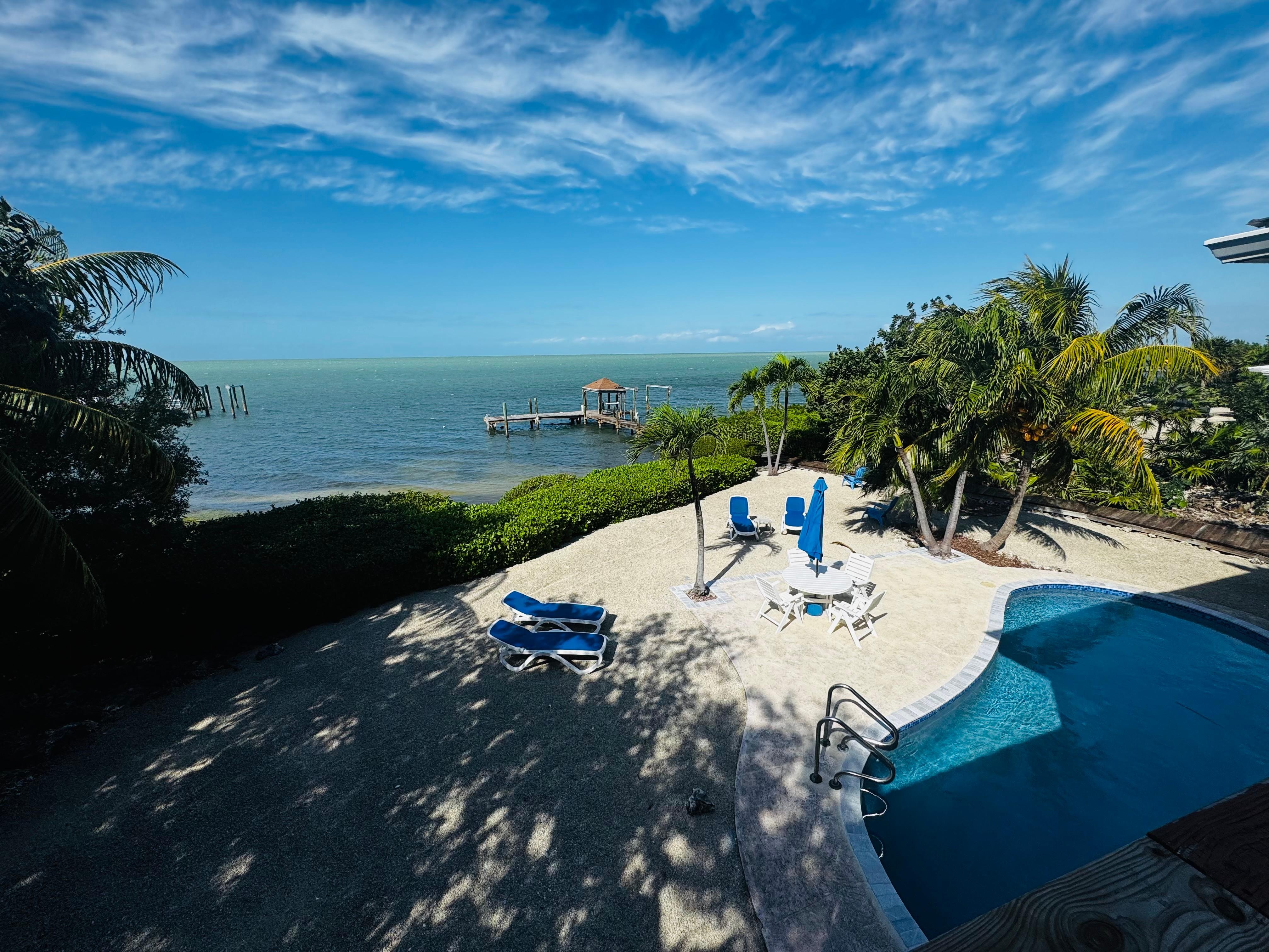 Rikelig utendørs stue og spisestue. Det er en gassgrill og dypt vann båthavn. Hjemmet ligger rett ved Mexicogulfen og gir utsikt over åpent vann. Perfekt sted å se noen av de beste solnedgangene i Florida Keys.
