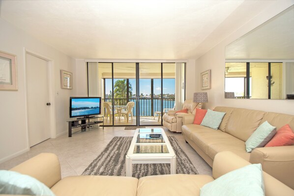 Hva en flott leilighet for deg å nyte. Alt du trenger er her. Oppvarmet basseng og boblebad utsikt over Smokehouse Bay. Du kan til og med ha en båt der. Leiligheten er fullt møblert og lovley. King seng i Master, tvillinger i det andre soverommet og en sovesofa i stuen. Hyggelig veranda med utsikt over bukten. Beste utsikten i bygningen. Tile i stuene og en fin spisestue festet til stuen så nyt utsikten fra alle rom. Vaskemaskin og tørketrommel er i leiligheten. Tennisbaner. Plasseringen er flott. Gå til restauranter og shopping.
