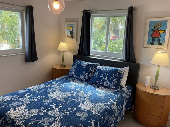 Begin your day with a quiet moment on the enclosed lanai, where soft natural light filters through and the peaceful setting makes it the perfect place to sip coffee, read, or plan your island adventures. When you're ready to venture out, grab the provided beach chairs, cart, umbrella, cooler, and towels and stroll just minutes to the sandy shore. After a day spent shelling, swimming, or exploring the island, return to the outdoor seating area and unwind around the fire pit as the evening sky begins to glow. Or, head over the island’s best restaurants/bars a few blocks down the street.