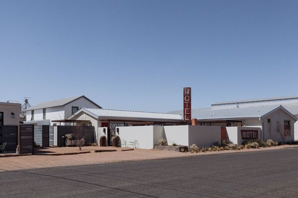 Marfa’s compact size and MOTEL’s central location make walking and biking convenient for getting around. In town, there are local transportation services we can provide information for. Rideshare apps are very limited/rarely around.
