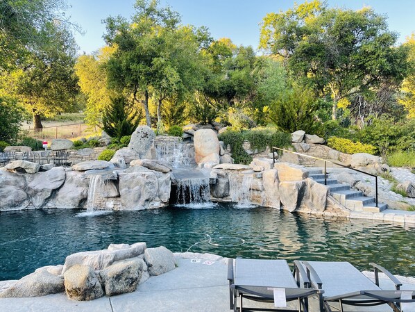 RESORT STYLE POOL & SPA - gorgeous waterfall pool with pebble tech floor to delight our most discerning guests. A relaxing place to rest and unwind after long days in the Yosemite Park or hiking. **Solar pool heating May-Sept and depending on weather pool may be usable in Apr & Oct **