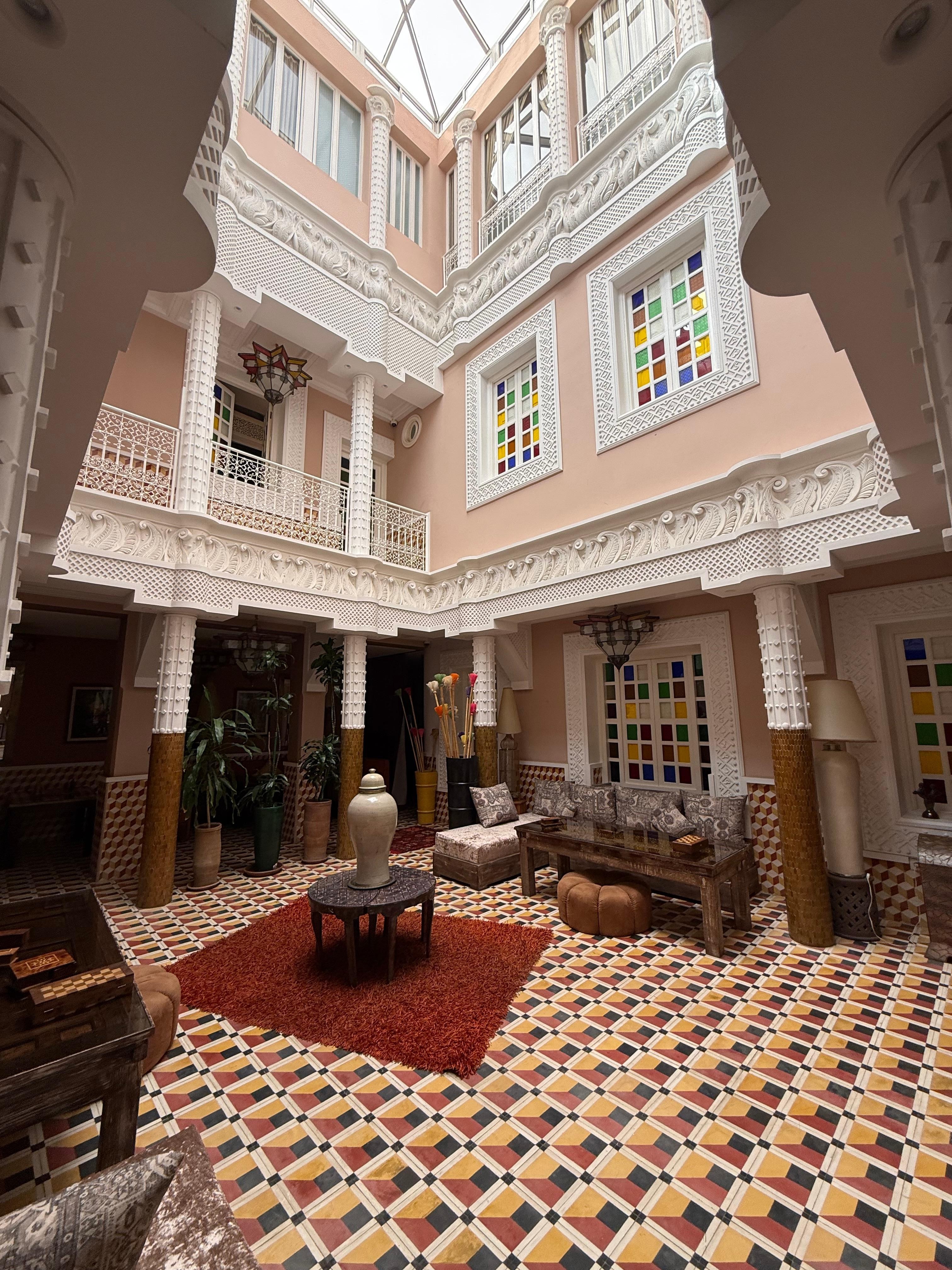 From the moment you step through the doors, the design stops you in your tracks. Every detail has been thoughtfully considered — the intricate tilework, the carved plasterwork, the lush central courtyard — it's the kind of place you find yourself wandering just to take it all in. Authentic Moroccan craftsmanship at its finest, with an elegance that feels both timeless and deeply personal.
