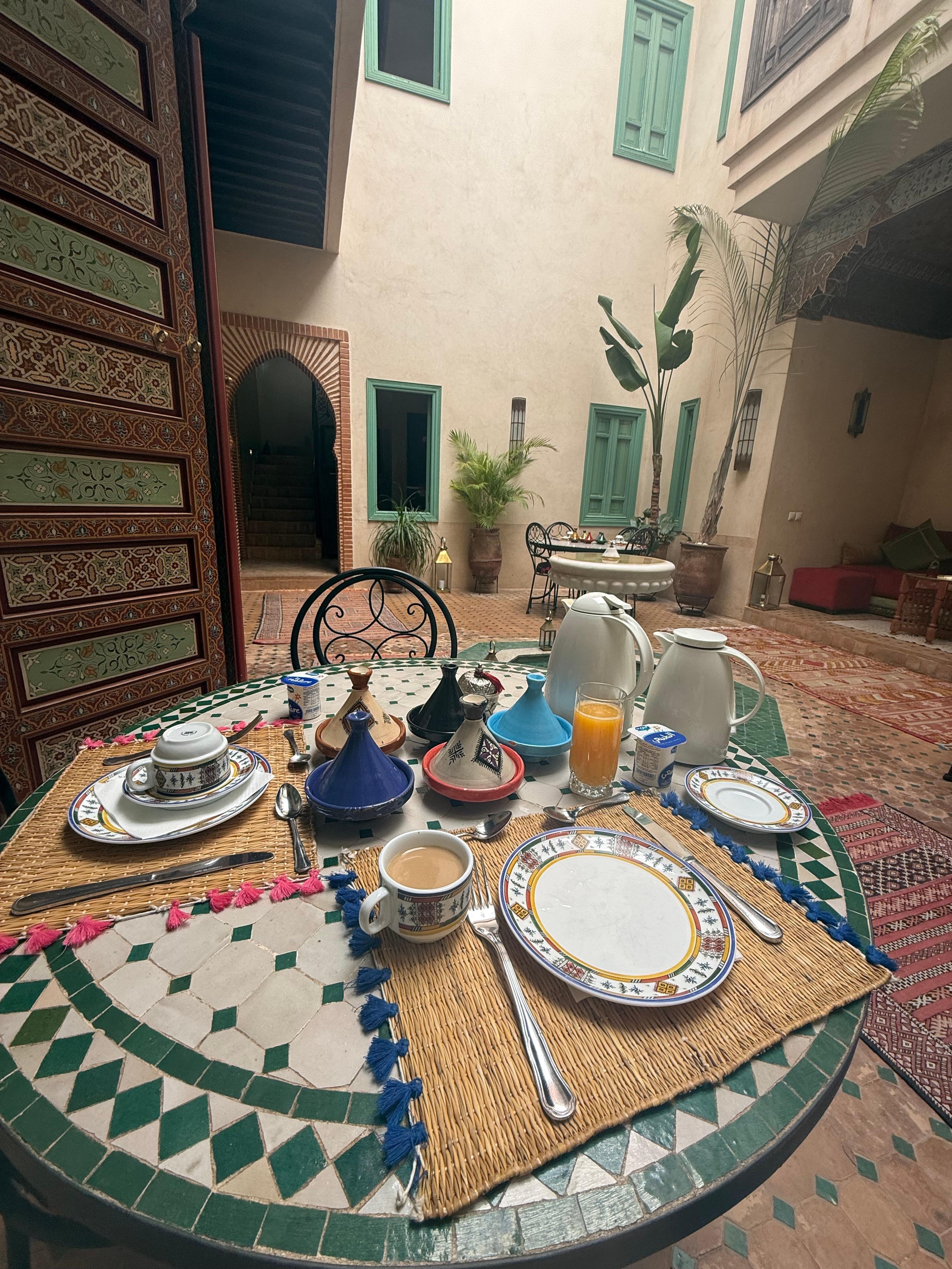 Ibrahim from the staff was very kind and helpful, he even arranged the transport from the airport, picked us up at 6am and the communication was easy all the time. The riad was extremely clean and the breakfast delicious.
