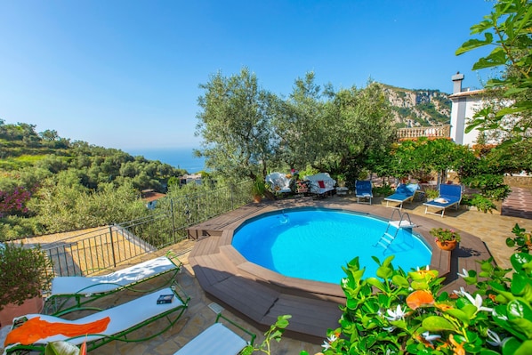This villa offers a private pool, garden, open terrace, barbecue, and outdoor shower. Additionally, guests have access to a shared outdoor area with a covered terrace.