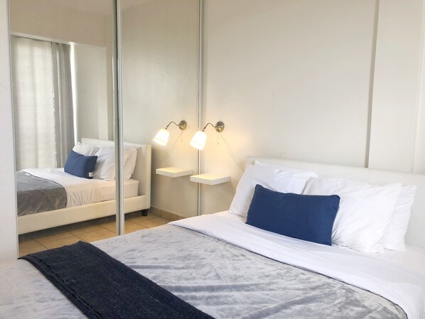 Det elegante leilighetshotellet er utstyrt med alt utstyrt og amøblert, un cuarto con una cama tamaño Queen Size (2 personas) + sofá cama tamaño Queen Size (2 personas), lo que permite acomodar fácilmente 4 personas (aplica cargo adicional de $ 15. 00 por noche, por persona adicional a 4) en éste apartamento. Incluye también las sabanas, fundas, frisas og almohadas.
