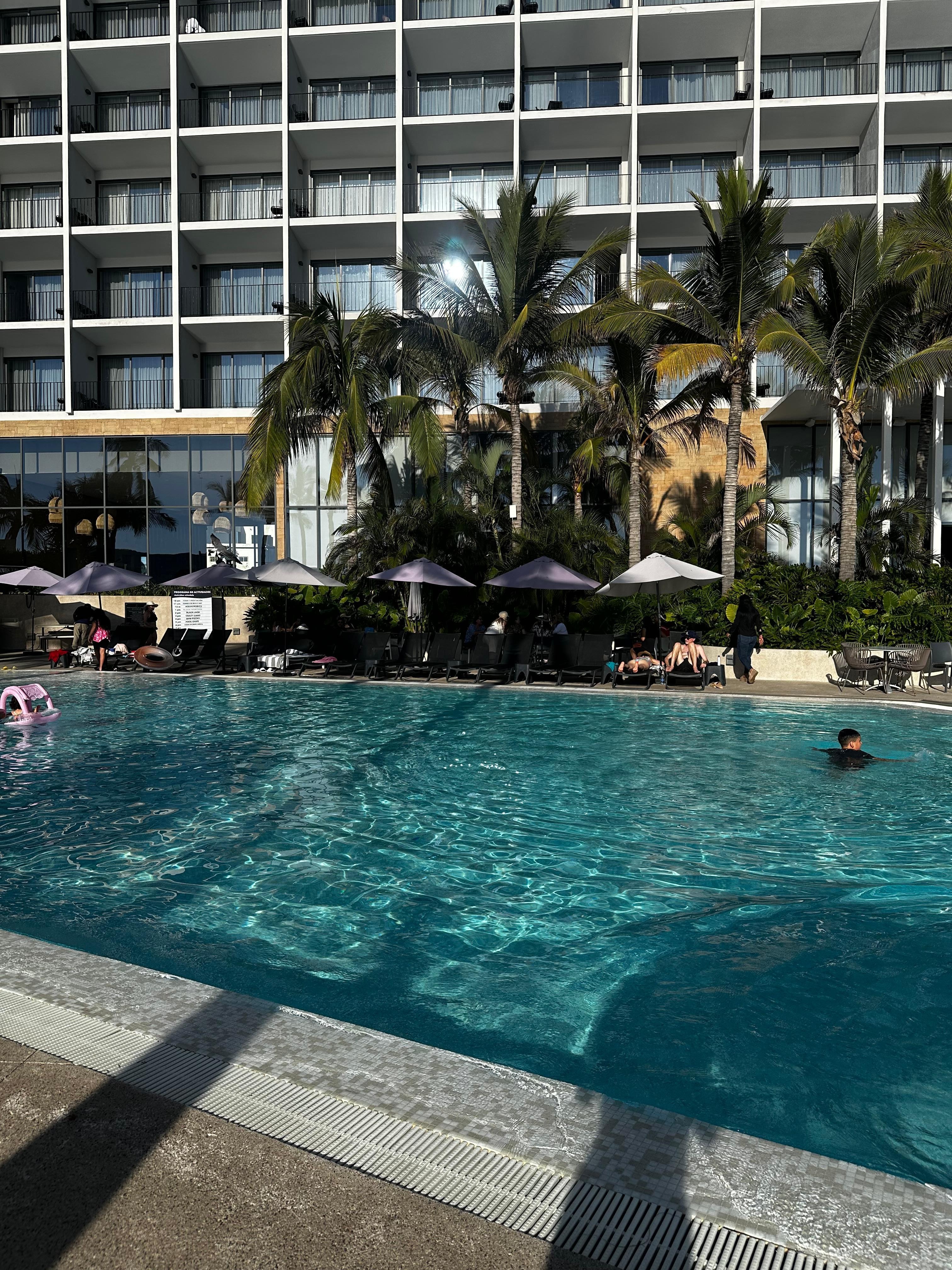 No hay suficiente espacio en la alberca.. no puedes ni caminar entre las sillas..