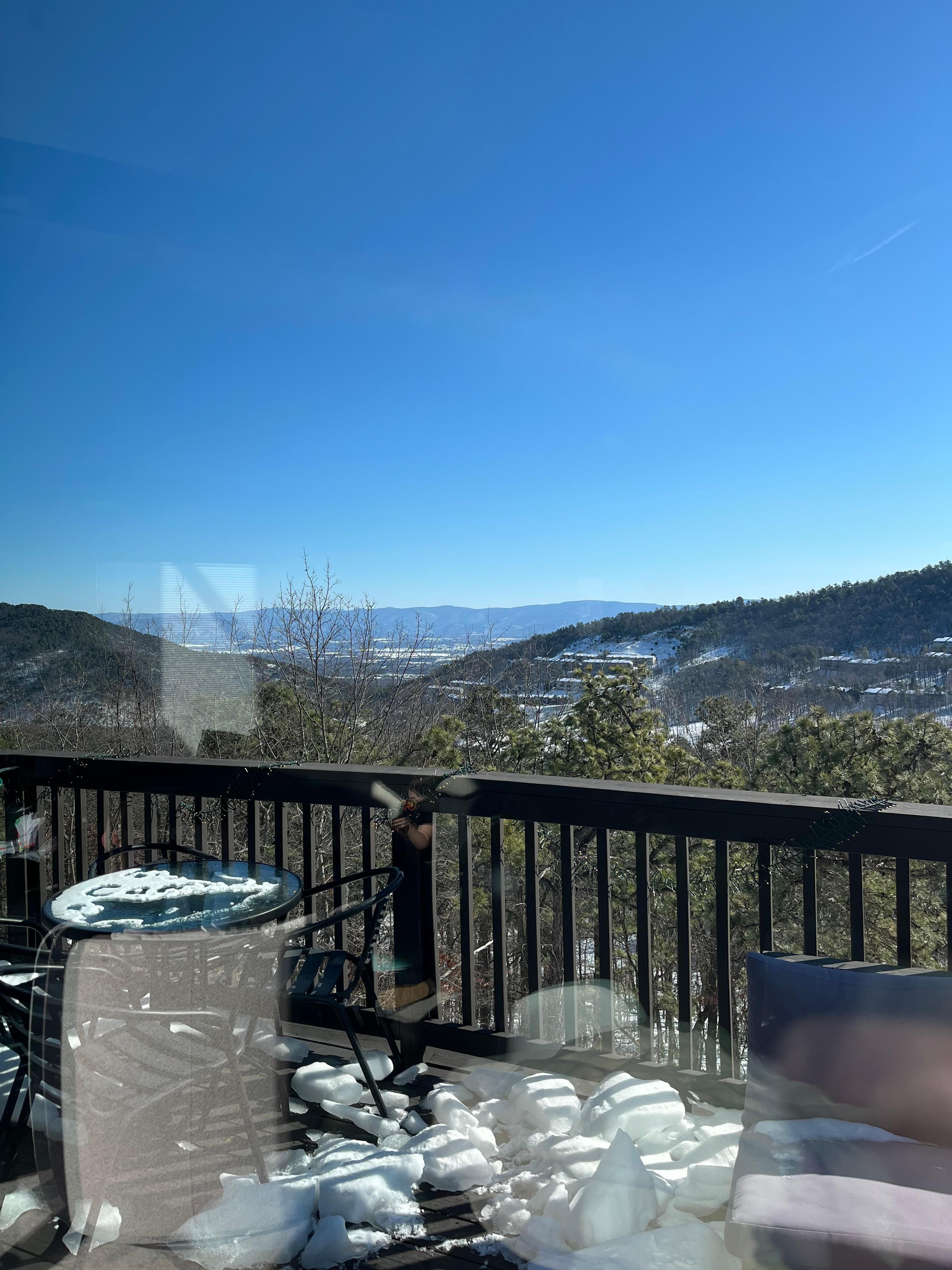 The living room & dining area both enjoy a wall of windows and unimposing deck railing give you fantastic views of the ski slopes, down into Massanutten, the valley and Blue Ridge mountains.