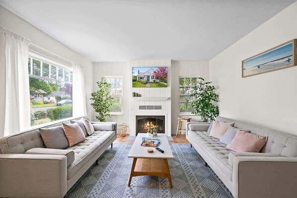 ✔ A bright and airy living room complete with a stylish fireplace and ample seating for gatherings