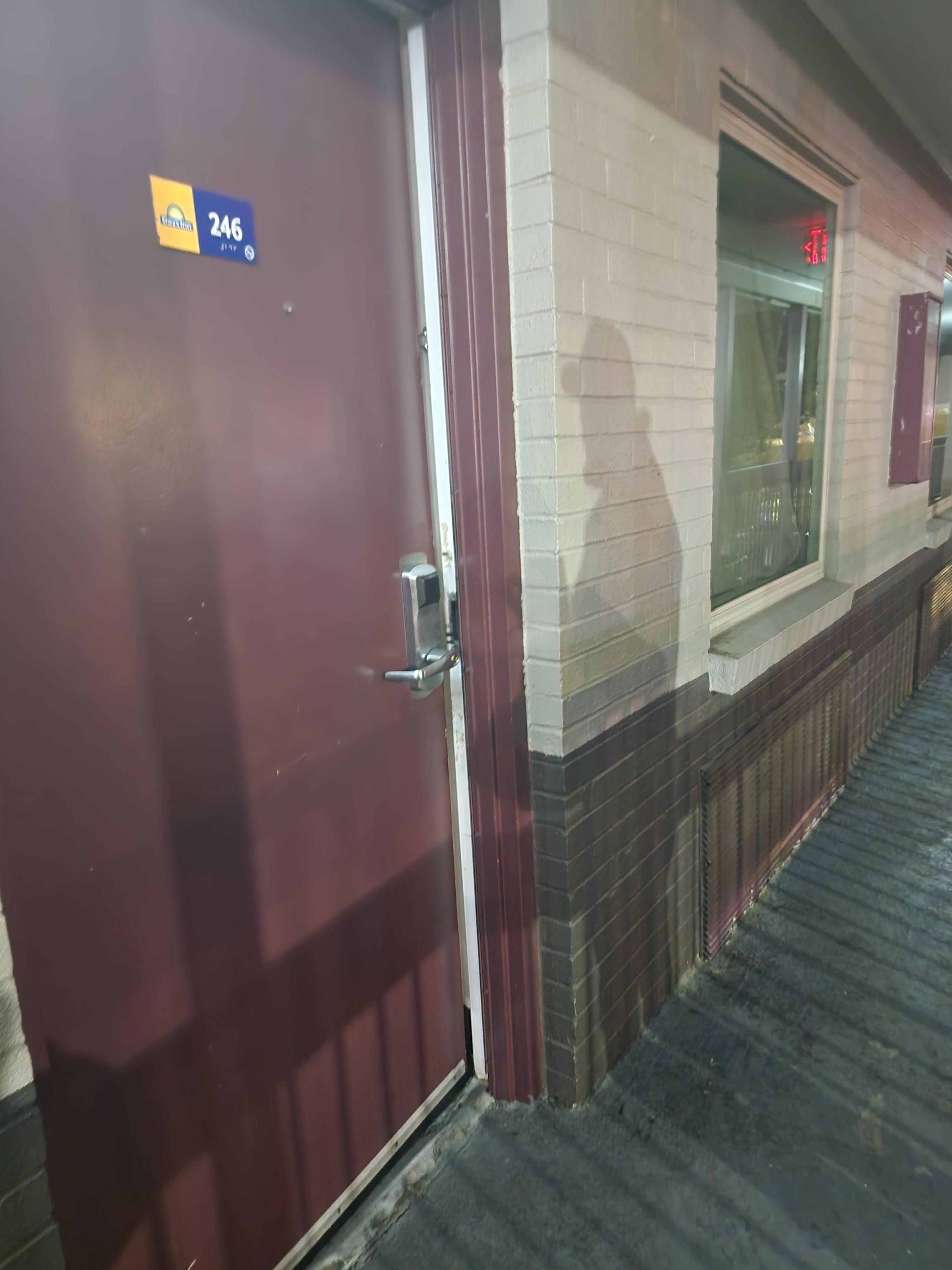 When we checked in at 2 am our room door was opened. We did realize that room you have to slam the door to get it to shut we figured room service didn't know and didn't shut the door all the way. We were tired so didn't say anything at the moment. Then Saturday morning while I was studying and trying to propare my sermon and my husband was sleeping he was woke up by someone doing repairs, using a hammer loudly and a loud air compressor, in the next room on the wall our bed was on. The sound was on the other side of our heads. I called the office and asked for another room, they said they didn't have one available. Ten minutes later we did hear the office lady come and say something to the repair man and he left. We went out for a good part of the day and arrived back around 10pm Saturday night and when we got to our room the room was open again. Room service came and took care of the trash and towels even though we did have the do not disturb Sign up, we were concerned the door would be left open. We said something that time and showed the picture we took, they again didn't have a room to move us to and the maintenance , man refuse to come fix it while we were there. On top of that we had to keep socks on of scoot a towel across the floor after a shower or our feet would be black.