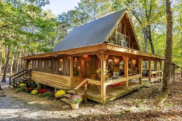 Escape to Falcon Lodge, a stunning four-bedroom retreat nestled on five acres of pristine forest in Canopy Woods. Surrounded by towering hardwoods and pines, this lodge offers a 5-star vacation experience, blending Appalachian charm with Rocky Mountain flair. Whether you're here for a peaceful escape, a family adventure, or a friends’ getaway, this beautifully designed space invites you to relax, unwind, and reconnect with nature.
