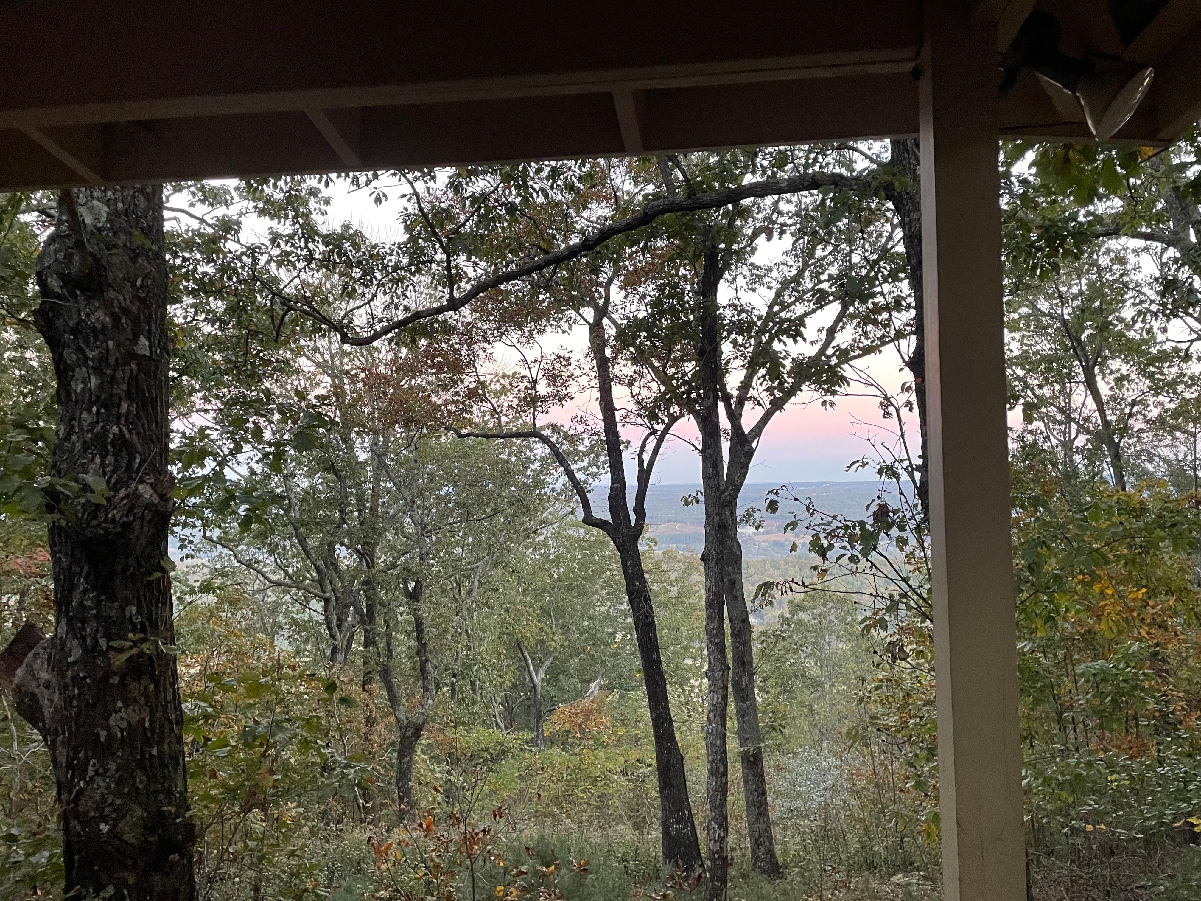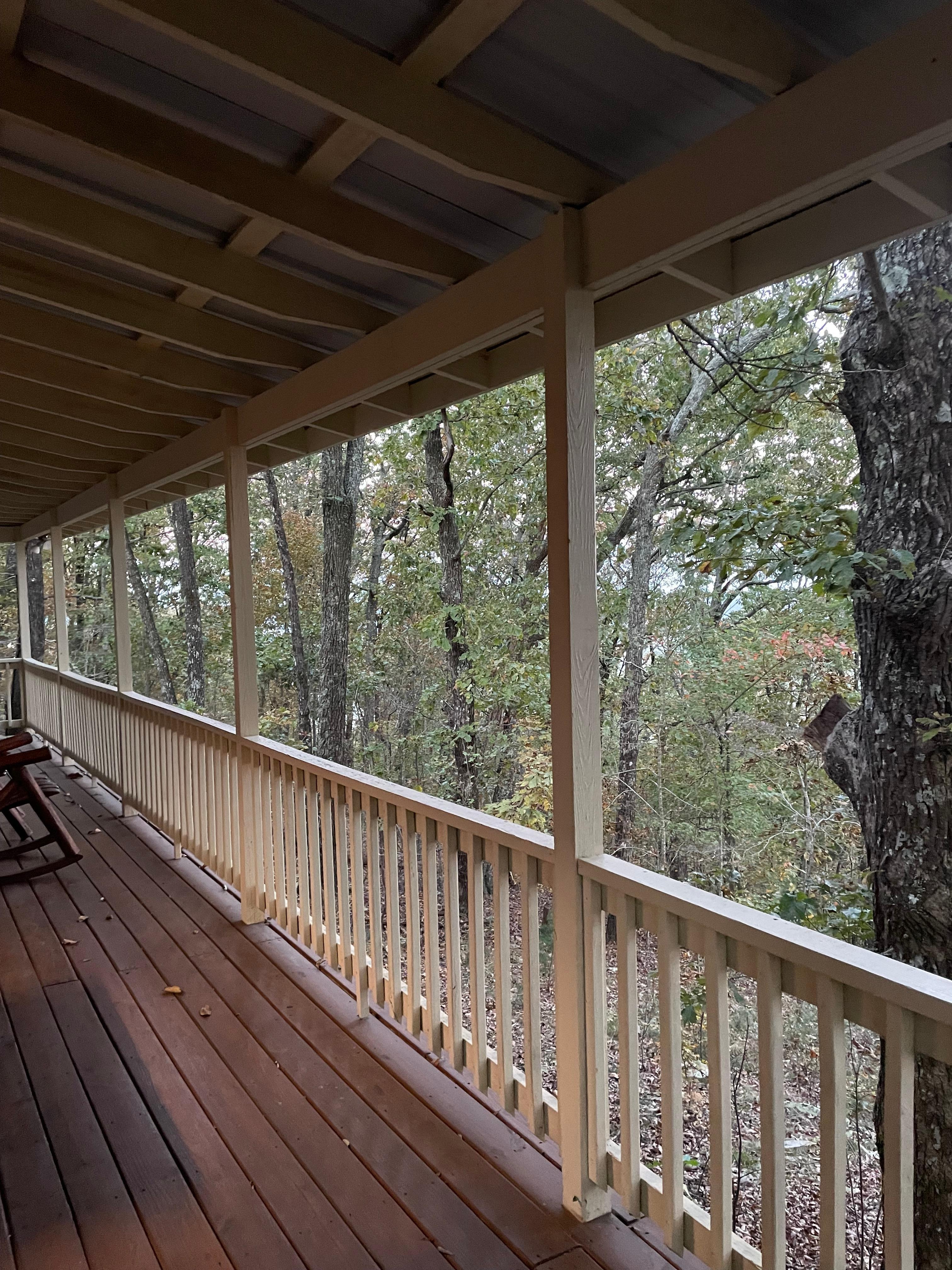 Selv om vår hytte er utstyrt med satellitt-TV som betyr at du vil ikke gå glipp av din favoritt ball spillet i høst, de fleste av dere vil la den av å nyte avslappende omgivelser. Den store verandaen er det perfekte stedet å nyte den kjølige skyggen av trærne i sommer og fargerik høst. Vintermånedene avslører skjønnheten i dalen nedenfor og rygger i det fjerne.