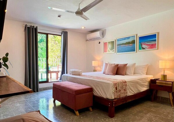 Rom – design, 1 kingsize-seng, privat bad, bakgårdsutsikt