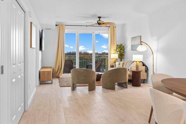 Discover luxury living at River Fly In. This is a listing for "The Merritt", a brand-new 2-bedroom, 2-bathroom condo overlooking the Banana River and Merritt Island Airport. Surrounded by a serene nature sanctuary, this private oasis blends modern design, high-end amenities, and a peaceful retreat from the everyday.