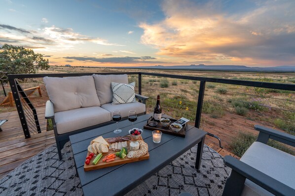 Dark Canyon was indeed a great off grid experience. The 360-degree views around the cabin with no other humans around offered something not found very often. Sitting on the deck at sunset while enjoying a glass of whiskey and looking at the Bears Ears was truly a western experience. The sunrises make you want to get up early just to experience the beauty. It makes you understand the use of pink and turquoise in the Native American art of this region. The wildlife around the cabin was wonderful. At night the howling of the coyotes and bugling of the elk and the deer grazing by the cabin was so nice, it let us know we were the visitors to the area, they owned it. The fact the cabin was dog friendly and we were able to travel with our two dogs made the trip for us. They are large dogs and enjoy hiking and being with us. They are well trained to not bother the wildlife, this would be essential in this area.