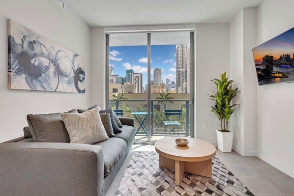 Modern 1 Bedroom + Den & 2 Bathrooms Condo at 501 First, Downtown Miami. Features 1 Queen bedroom, 1 Full sofa bed and a day bed. Fully equipped with Wi-Fi. Enjoy great amenities including Resort-Style Pool, State of the Art Fitness Center, lounge room, and workspaces. Valet parking available at the building. Steps from restaurants, shops, and entertainment, and minutes from Brickell, Bayside, Wynwood, Miami Beach, MIA & Brightline train station. Perfect for leisure or business stays.