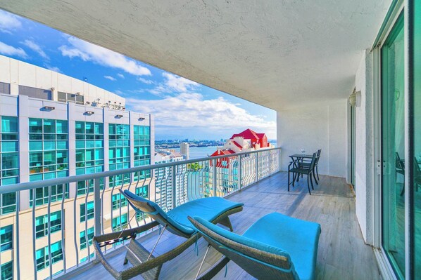 🌇 Private balcony with stunning city skyline views