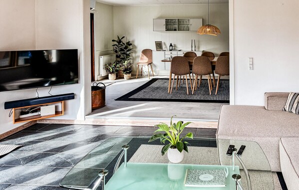 Det sjarmerende feriehuset på Båring Strand har god plass til hele familien og innbyr til å føle seg som hjemme med sitt lyse, elegante interiør. Start dagen med frokost i den åpne stue- og spisestuen, som slipper inn rikelig med naturlig lys gjennom de store vinduene. Slå deg ned ved spisebordet og planlegg dagens aktiviteter, eller slapp av i den komfortable sofaen. Det moderne kjøkkenet har alt dere trenger for å lage mat sammen på kveldstid. Her kan du tilberede deilige retter og nyte dem i fint vær på den koselige terrassen, som har både solrike og skyggefulle plasser. Slapp av i den rolige, inngjerdede hagen mens barna leker på plenen.