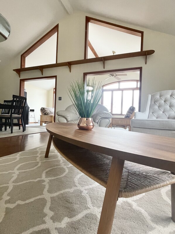 We're excited to share our peaceful retreat with you. You will love admiring the waterfront views from the morning room, deck, or private dock. After fishing, pedal-boating, or swimming in the river, the house welcomes you with fresh linens, AC/heat, a fully equipped kitchen, high-speed WiFi, smart TV, and retro arcade. You can end the day watching the sunset along the river while roasting marshmallows at the firepit.