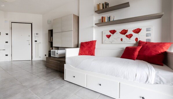 Meda 27 B is an apartment comfortable and cosy, perfect for business and leisure stays. The apartment is located in Milano on the 6th floor with lift and consists of 1 room. Meda 27 B enjoys a strategic location. The house is non-smoking, and is equipped with air conditioning and wifi. The kitchen is equipped with dishes, tableware and major appliances: oven, microwave and fridge/freezer. The sleeping area consists of 1 double sofa bed in the living area and 1 bedroom with 1 double bed, can accommodate up to 4 people. The outdoor space consists of the terrace. Meda 27 B also offers: television. . City Tax: € 6,30 from age of 18
