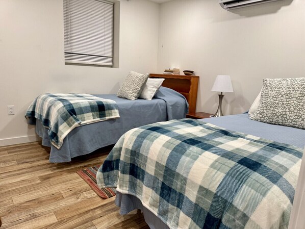 This featured two bedroom unit on the lower level is accessible by one flight of stairs. There is a queen bed and a twin bed in the larger bedroom and two twins in the second bedroom.