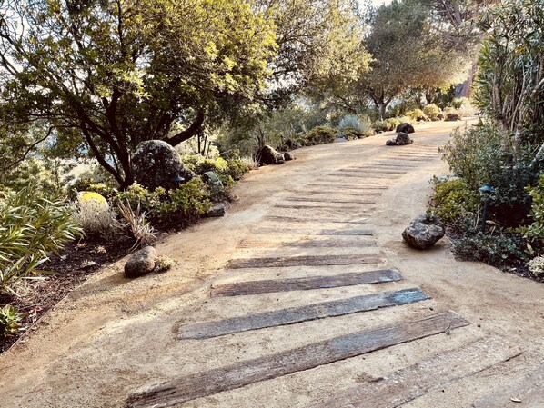 Det er en stor uteplass rundt eiendommen for å nyte den stadig skiftende utsikten til San Francisco og Mt. Tam. Og til tross for fjellområdet er det bare en kilometer kjøretur ned til det sjarmerende torget i Mill Valley.