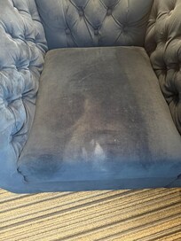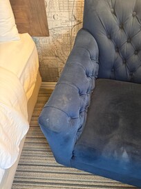 Room did have a lot of scrapes, and dings on the walls, and the arm chair in the corner of the room had questionable stains.
