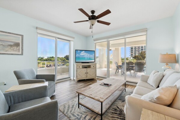 Ariel Dunes provides all Seascape resorts amenities including: 18 hole golf course, 3 full size pools, basketball courts, tennis courts, pickleball courts, and full service Cabana Café restaurant with live entertainment.