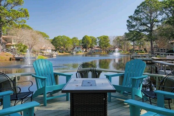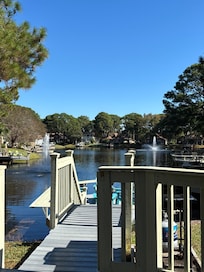 This is a great place in a great location on a great resort for a great escape. It’s in a quiet section of the resort, and well off the main road. There is just so much to like: relaxing spaces, comfortable bedrooms, fabulous deck and dock, and full kitchen. The golf cart made for easy access to the beach, the golf courses, restaurants/bars, marina, multiple fishing ponds, and even more just outside of the resort including a large grocery store and even more restaurants and shops. You could really make do without a car while you are on the property, and it only takes a few minutes to get anywhere with the cart. The golf courses are very nice (there is overseeding in November, FYI), and yes you can even catch fish right off the dock. Plenty of turtles and herons to see, too. It really feels like a luxury unit on a luxury resort. Our stay was memorable and most enjoyable. John was very helpful and responsive, which we really appreciated. We hope to come back again and again!