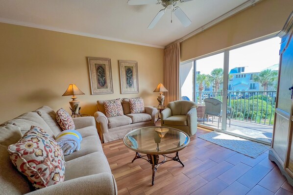 Dog-friendly condo with pool, hot tub, private balcony, AC, & washer/dryer