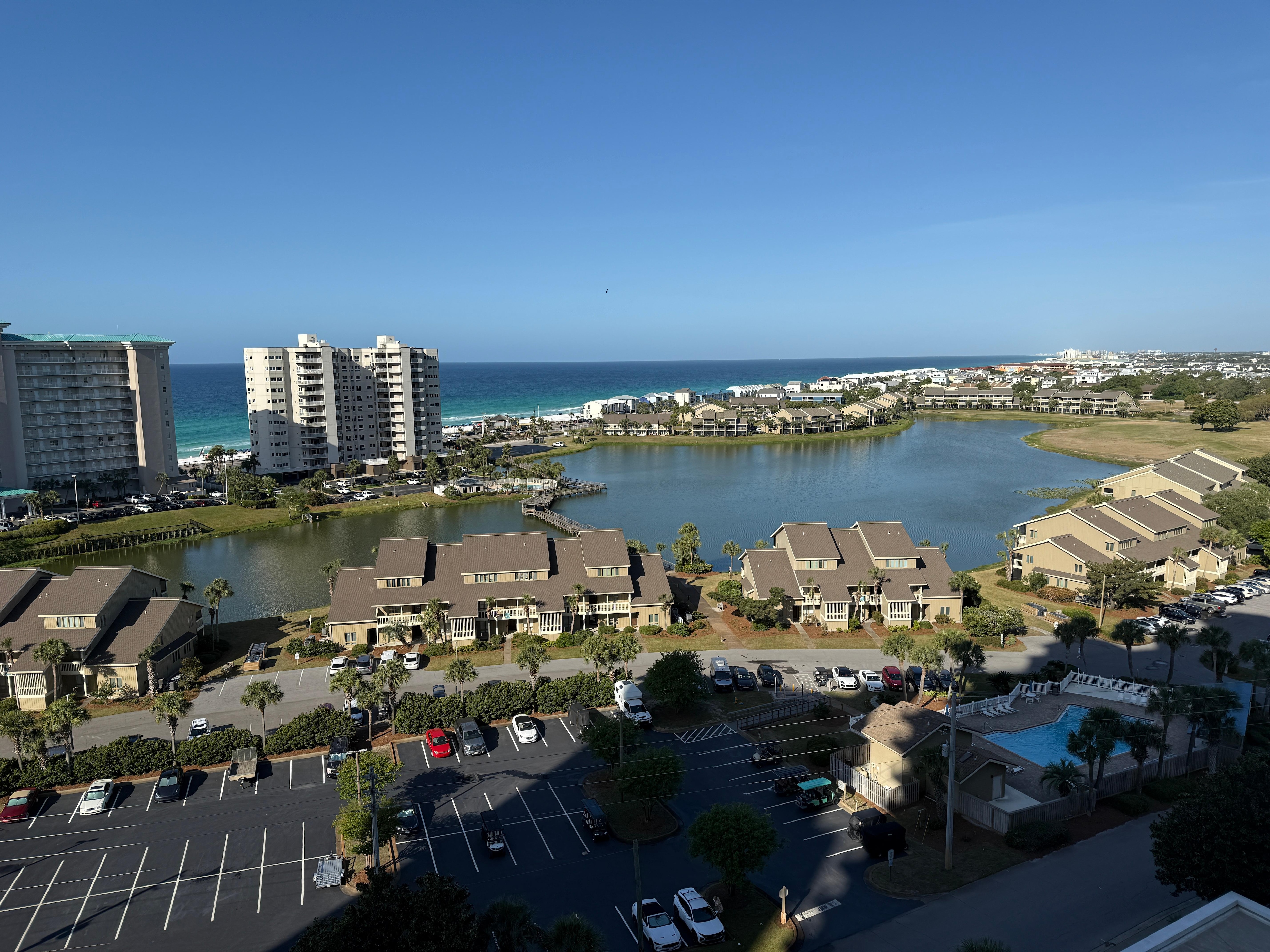 Ariel Dunes 2 is a 24 story tower with 3 huge pools over 11,000 sq ft. The pools includes one heated pool, mushroom fountain, and jetted water features. The Cabana Cafe is the ground floor of the building next door and has a full service restaurant & bar. Thursdays, Friday , Saturday nights & Sunday Brunch please treat yourself to some awesome music and entertainment. They have a family atmosphere & they love the the kids to join them on stage.