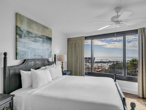 Indulge in the ultimate beachfront vacation in our luxurious 2-bedroom, 2-bathroom condo with Golf Cart at Beachside Tower One. This completely renovated retreat offers a king-size bed in the primary suite, accompanied by a spacious private bathroom and balcony access. Enjoy the stunning Gulf views peaking over the dunes from your private oasis. The second bedroom features a queen over queen bunk bed, complete with a pullout trundle bed for additional sleeping space. Whether you're relaxing on the balcony or taking a quick golf cart ride to the Marina Bar for a sunset dinner, every moment is a celebration of coastal living. Step onto your balcony and let the Gulf breeze sweep over you as you unwind with breathtaking views. This condo at Beachside Towers Two provides the perfect escape, combining modern comforts, like the smart TV, with the beauty of the emerald waters. As an added bonus, use of the golf cart is included in your stay so you can explore all that the resort has to offer in style on the golf-cart friendly resort streets and cart paths.