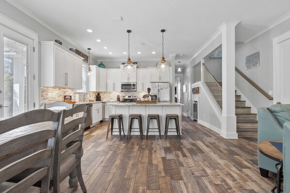 Dining Area (Seating for 8) + Breakfast Bar (5 Stools)