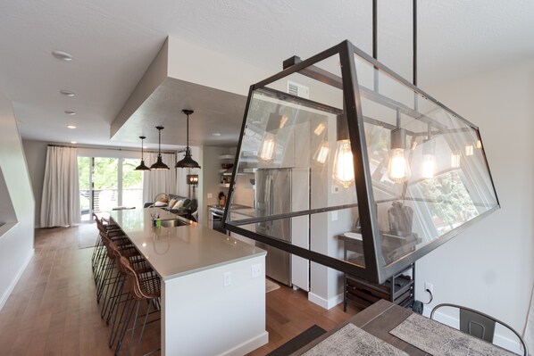I hovedetasjen kan du nyte komfortable og elegante salong med utsikt over Bess Reed Park, Clark Fork River og Mount Sentinel. Du kan nyte den store 55-tommers Roku-TV og en elektrisk veggmontert peis. Kjøkkenet er fullt utstyrt med en hette gass komfyr, rustfritt stål apparater, kvarts benkeplater, og en ekspansiv øy. Foretrekker å lage mat utendørs, er en BBQ på balkongen for deg å bruke!