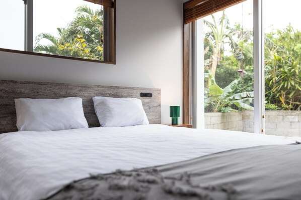 Badene har badekar eller dusj, bideer og tannbørste og tannkrem. 40-tommers flatskjerm-TV inkluderer digital-TV og Netflix.