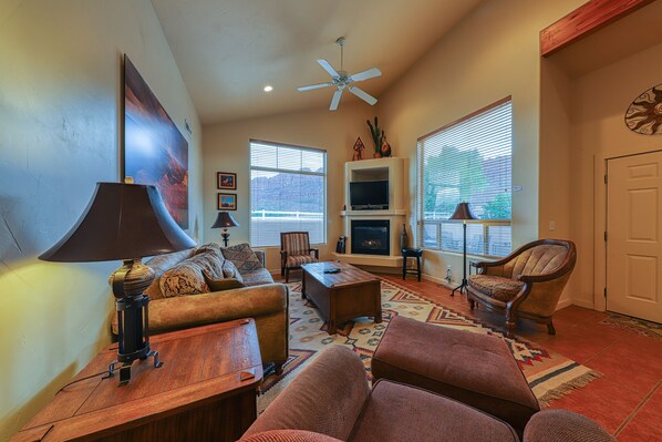 Ditt opphold i Moab vil være bedre for å velge denne fantastiske ferieutleien! Med et basseng, boblebad og fantastisk fjellutsikt har du alt du trenger for et foryngende opphold i den vakre Red Rock Desert. Fet, fargerik kunst på veggene og koselige sørvest-inspirerte møbler gir huset en følelse av energi og moro. Kos deg rundt peisen og underhold gruppen din med det tilgjengelige brett- og barnespillet.