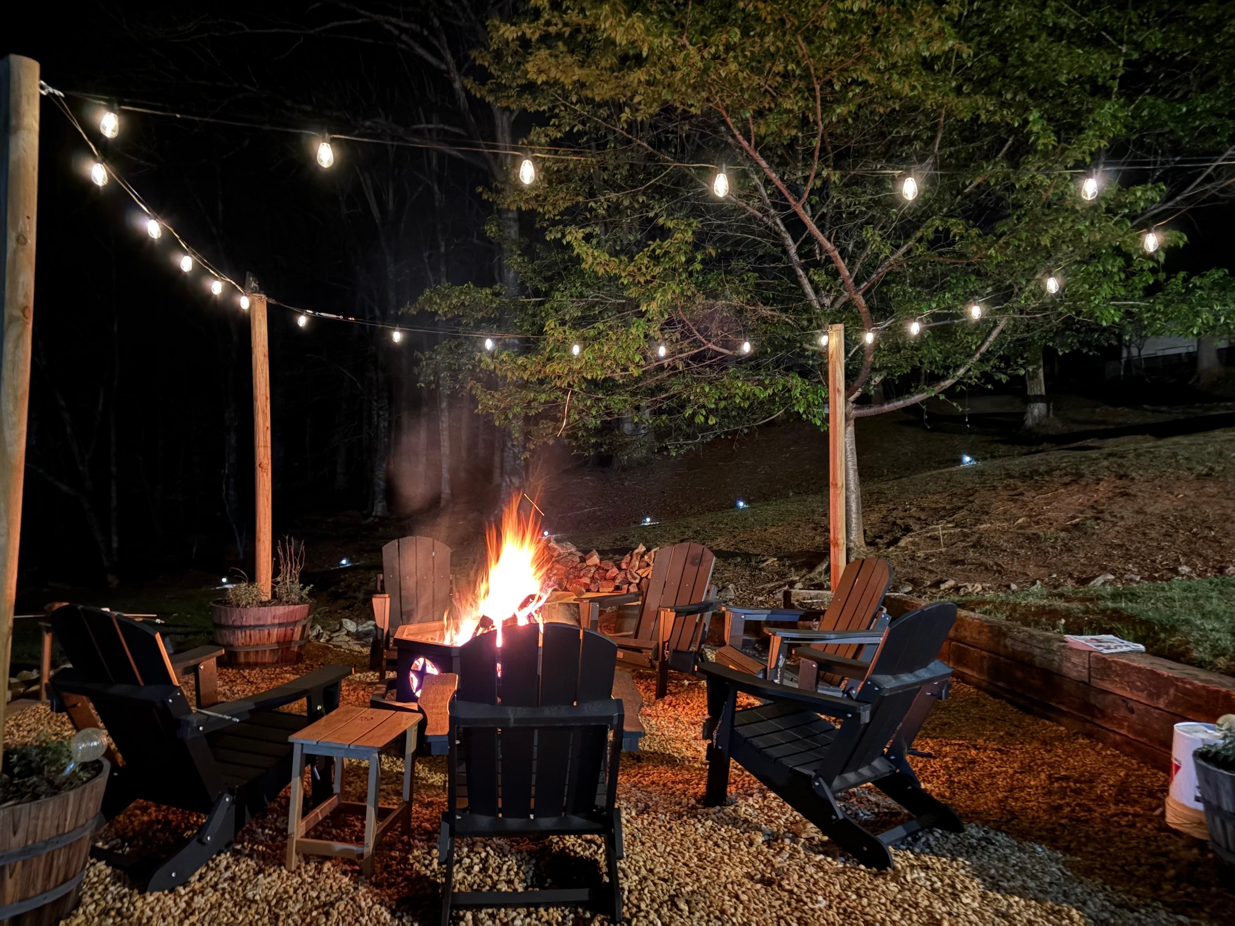 Outside there is a bonfire pit with 6 Adirondack chairs and market lighting, a designated astroturf lawn game area to play cornhole, kan jam, and other fun games. There are 3 standup paddleboards on the private dock with 2 Adironadack chairs and a swim ladder available for use. A canoe, swim pad, life jackets, and other water toys are available for use.