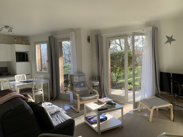 🏢 In a country setting, in the middle of nature, this pretty flat on the ground floor, consists of: