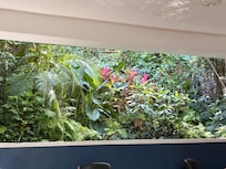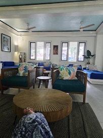 The rooms are dated and need a touch up. The rooms smell mold, the lock on the veranda door was broken and our garden view was not very nice. Due to gaps in the front door and veranda door we had some mosquitos in our room daily. The aircondition worked perfectly and hardly made any noise. Kept the room nice and cool (but didn’t help on the mosquitos). A small fridge with two daily bottles of water in the room was also nice.