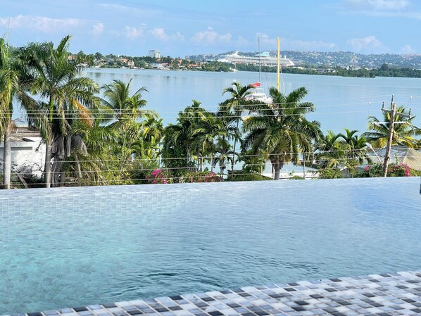 In unit Infinity Plunge Pool overlooking the city and Freeport area of Montego Bay.