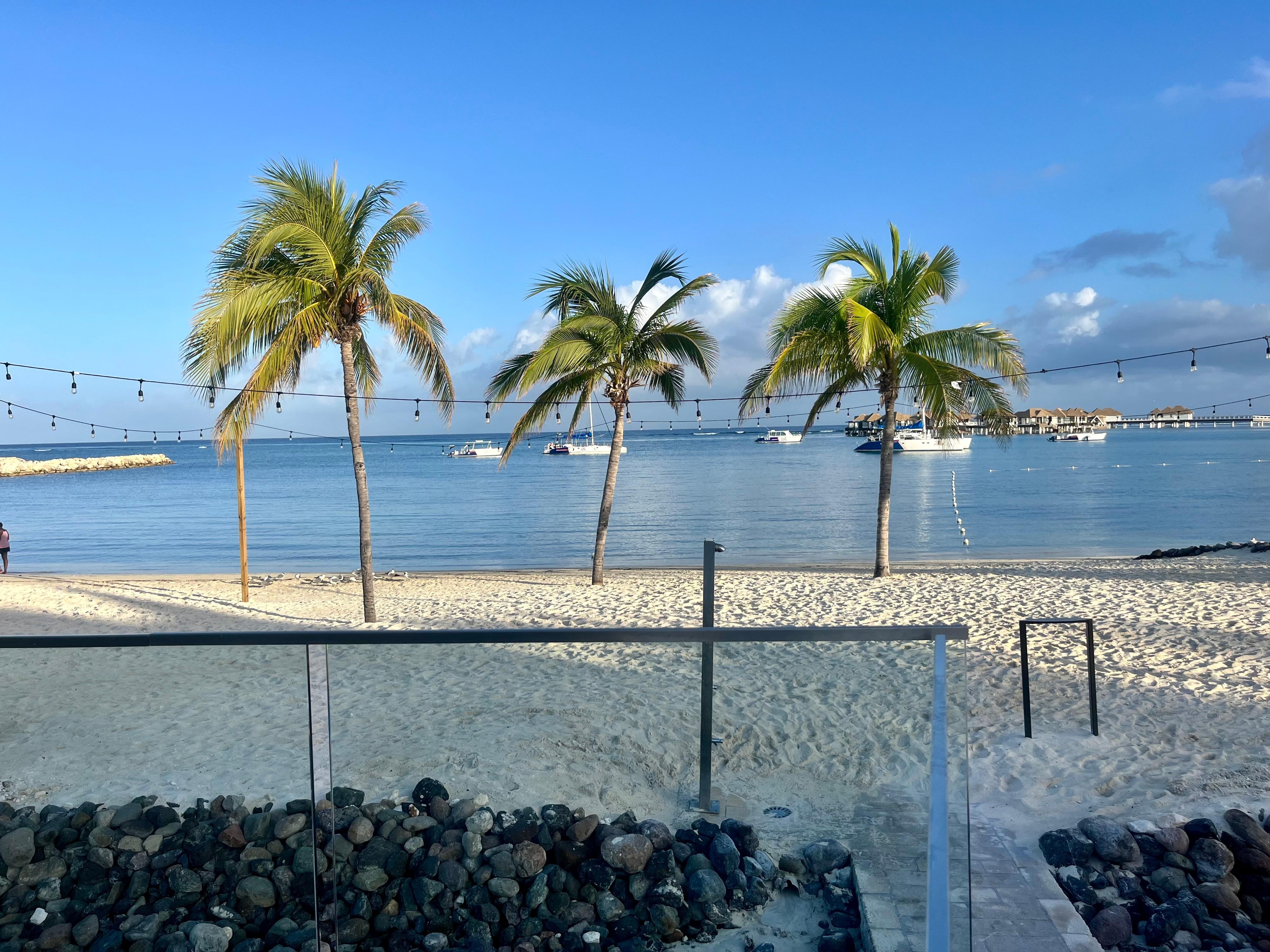We really enjoyed the pools, beach and the food! We did have a couple of issues with our room that they addressed fairly promptly. We were only able to get reservations at specialty restaurants for 2 nights out of four, because they were full. Would recommend trying to book restaurants before your trip. There were approximately 8 to 10 Jamaican men on small boats trying to sell drugs all along the beachfront. It detracted from the beauty of the beach and it was annoying when they kept trying to get your attention. Marijuana smell everywhere. The room was nice and spacious. They had one really good dance show but the others were not that great. The food was really good overall!!