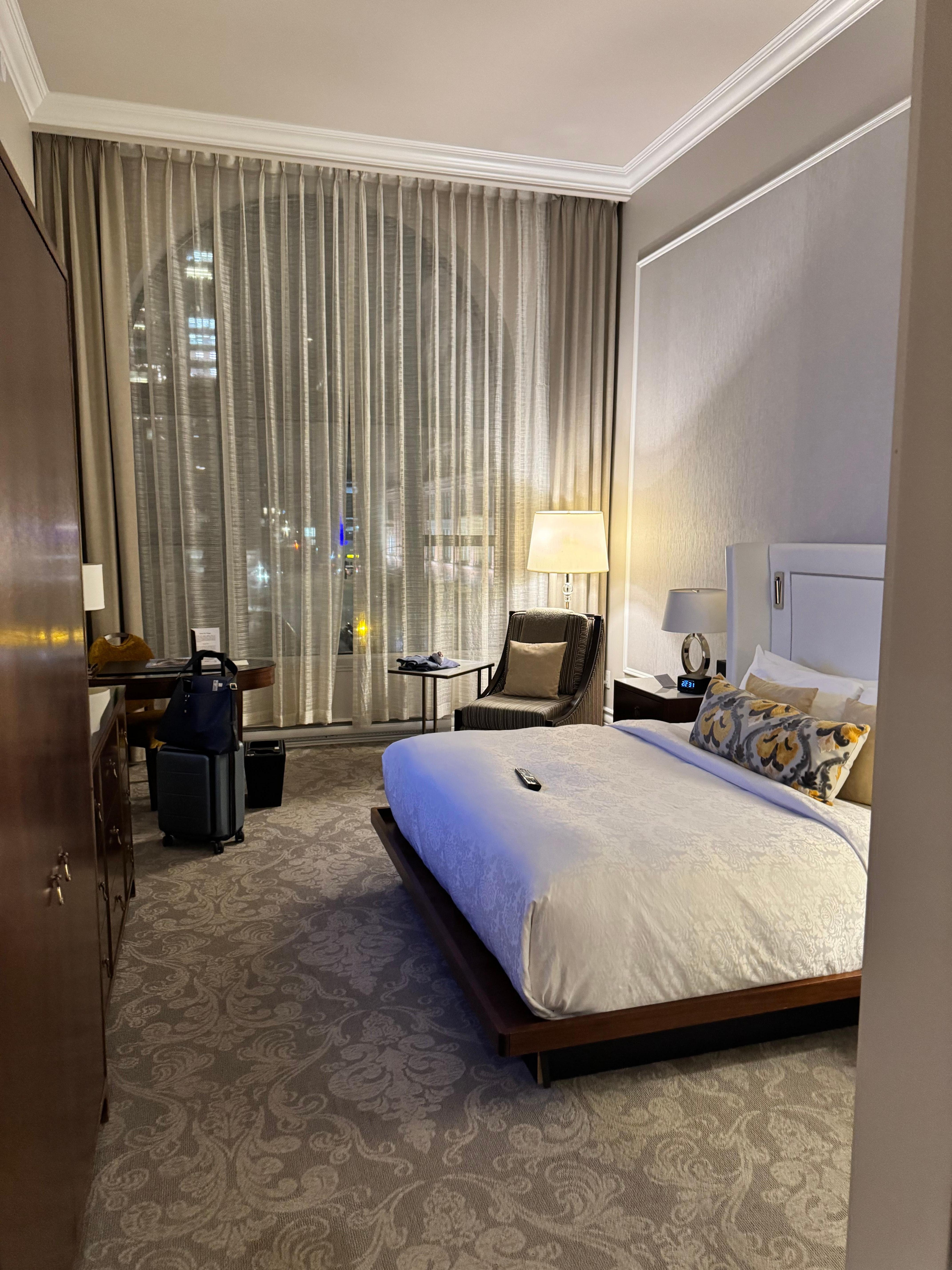 Belle propriété avec une localisation centrale! Chambre spacieuse et lit confortable. Les membres du personnel étaient tous très courtois, cependant le niveau de service n’est tout simplement pas à la hauteur d’un hotel 5 étoiles. Nous sommes habitués de séjourner au four seasons lorsque nous venons à Montréal et malheureusement les deux propriétés ne sont tout simplement pas comparables. Par exemple, les poubelles de la chambre n’ont pas été vidées lors de l’entretien ménager, les toiletteries n’ont pas été remplacées, personne qui propose d’aider avec les sacs à l’entrée.. De petits détails qui font en sorte que le service n’est simplement pas au niveau de ce qui serait attendu d’un établissement 5 étoiles. Nous avons tout de même apprécié notre séjour.